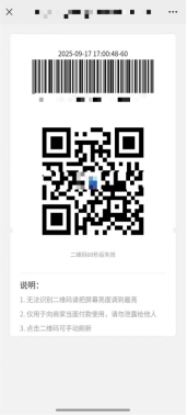 3. 点击付款码即可进行消费(消费码60秒过期,消费失败请刷新二维码)