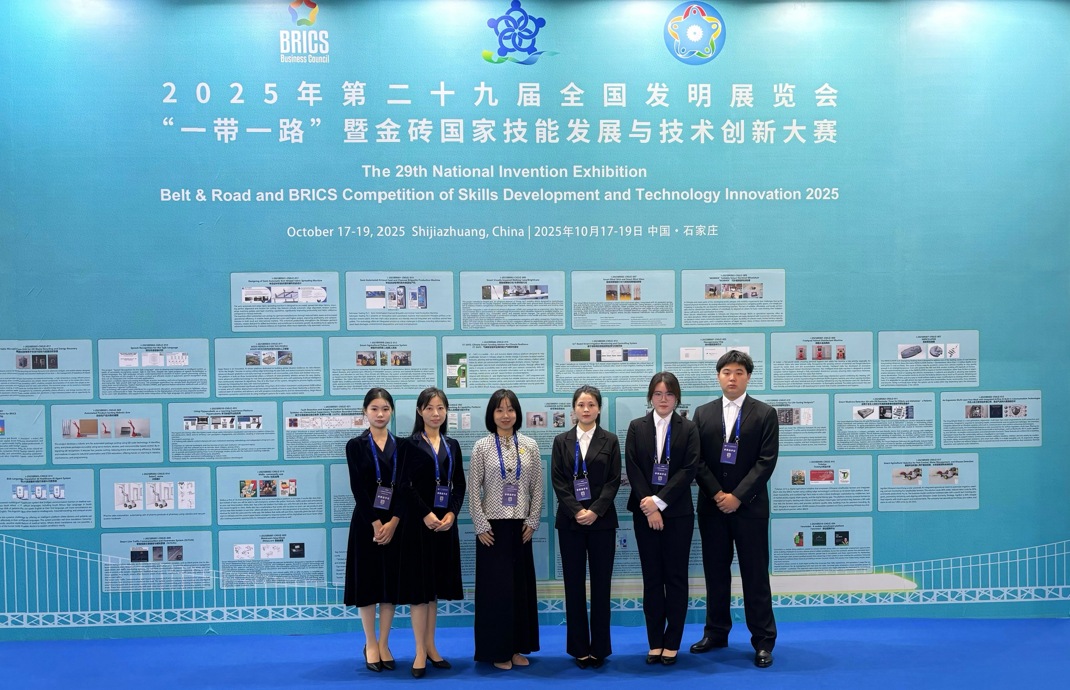 10月19日,2025年第二十九届全国发明展览会“一带一路”暨金砖国家技能发展与技术创新大赛在河北省石家庄市国际会展中心圆满落幕。我校化工与制药系参赛团队凭借扎实的专业功底和突出的创新能力脱颖而出,最终荣获二等奖一项、三等奖一项,为学校赢得了国际声誉。