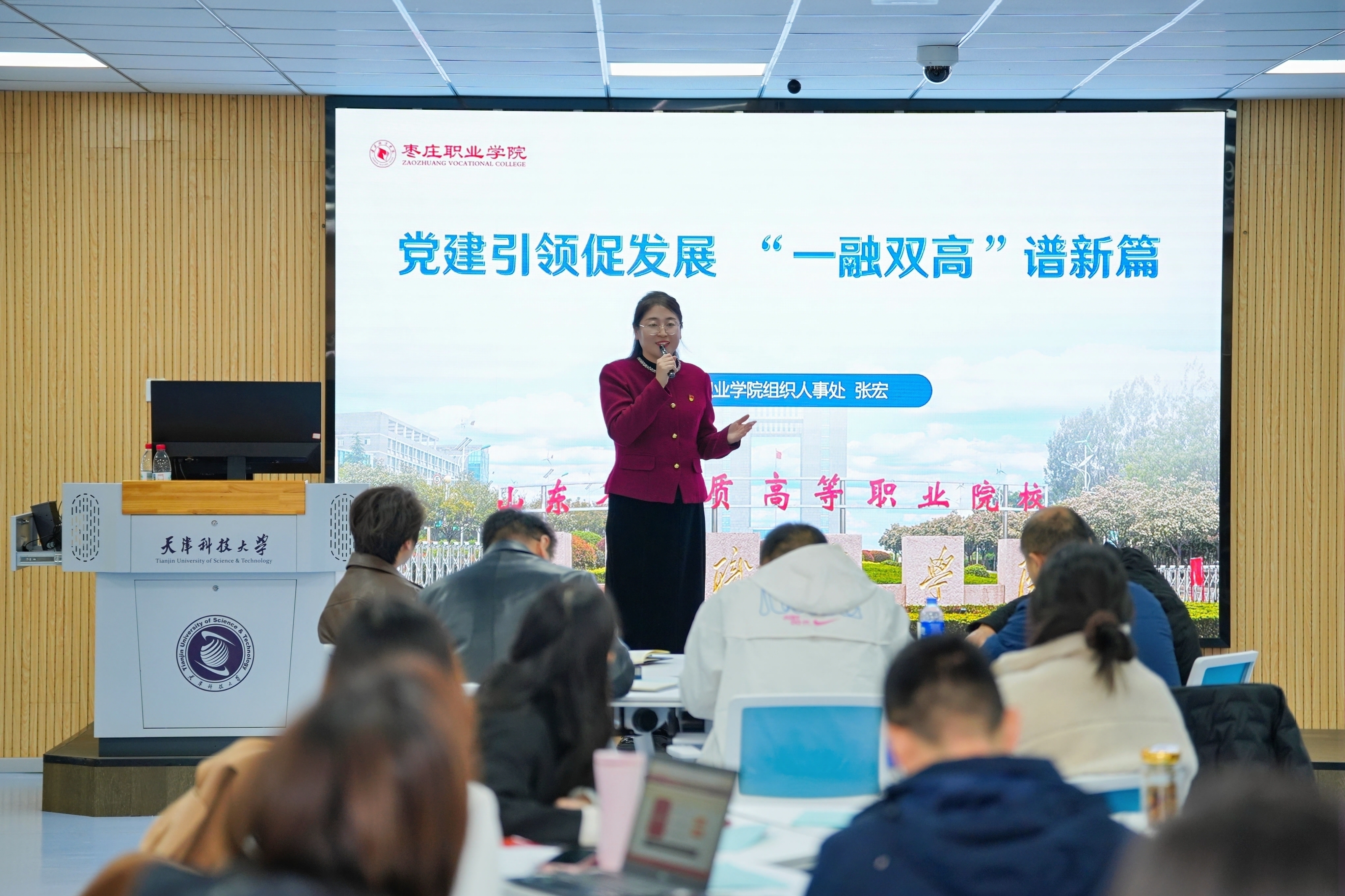 在“高校院系‘一融双高’建设路径优化”和“党建引领五育融合育人机制创新”分论坛上,学院化工与制药系党支部副书记田庄、组织人事处副处长张宏、学工处(团委)副处长李艳分别以《党建领航·五育融“化”:枣庄职业学院化工与制药系育人机制创新实践》《党建引领促发展 “一融双高”谱新篇》《以党建为统领 构建“五育并举”育人体系》为题作典型发言,全面展示了学院在推动党建与事业发展深度融合方面取得的探索成果与工作成效,受到与会专家高度评价。