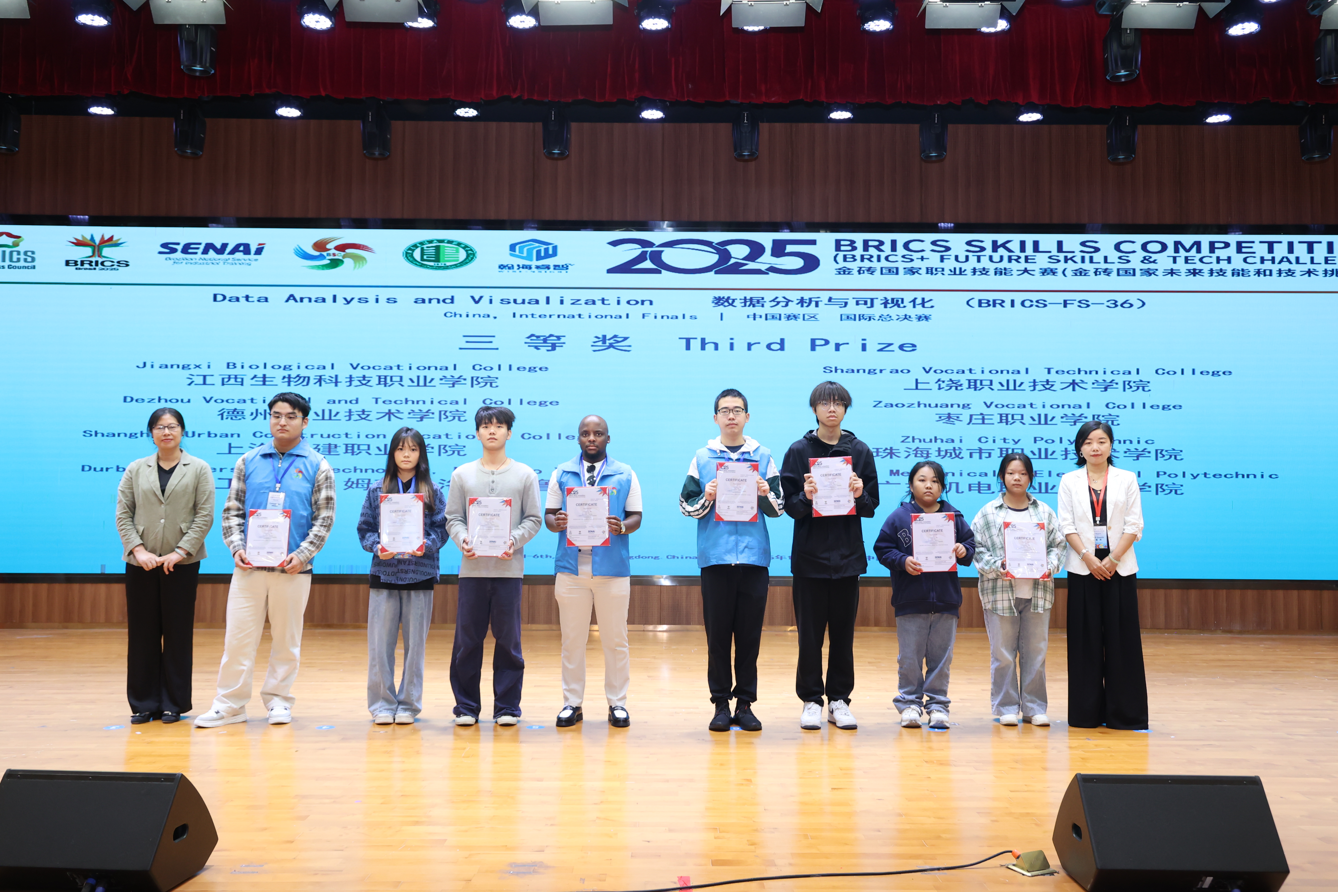 11月2-6日,2025年金砖国家职业技能大赛数据分析与可视化赛项中国赛区国际总决赛在广东建设职业技术学院清远校区举办。由经济与信息技术系教师关静指导的刘浩宇同学,在137支中外参赛队的激烈角逐中表现亮眼,最终斩获三等奖。