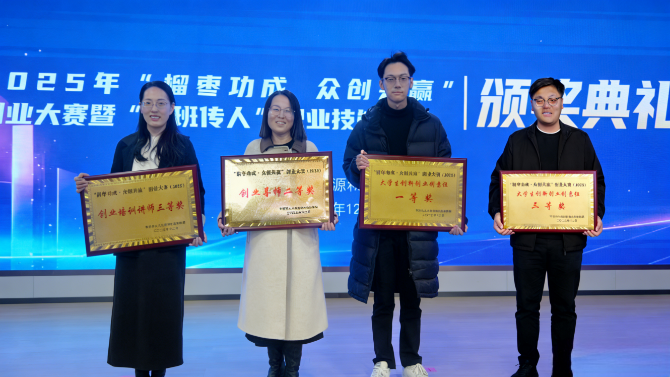 近日,枣庄市“榴枣功成 众创共赢”创业大赛圆满落幕,我校师生与行业精英在多个赛道同台竞争、表现亮眼,斩获一等奖、二等奖各一项,三等奖两项,实现学生参赛项目与教师专业能力建设双丰收。