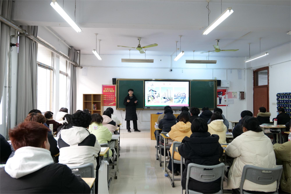 随后,郝艺以《践行社会主义核心价值观 争做新时代优秀职教学子》为题讲授思政课。他结合校内优秀人才成长事迹、学校在世界职业院校技能大赛冠军总决赛取得亚军的案例,深刻阐释了社会主义核心价值观对于新时代大学生成长成才的现实意义。他勉励同学们,一要厚植爱国情怀,将个人理想融入学院发展和国家建设大局,以实际行动诠释爱国担当;二要秉持敬业精神,深耕动漫专业领域,锤炼过硬技能,以精湛本领为职业发展筑牢根基;三要坚守诚信底线,在学习和生活中恪守诚信准则,筑牢立身之本;四要践行友善理念,团结同学、互帮互助,营造和谐融洽的集体氛围,争做爱国敬业诚信友善的新时代大学生。