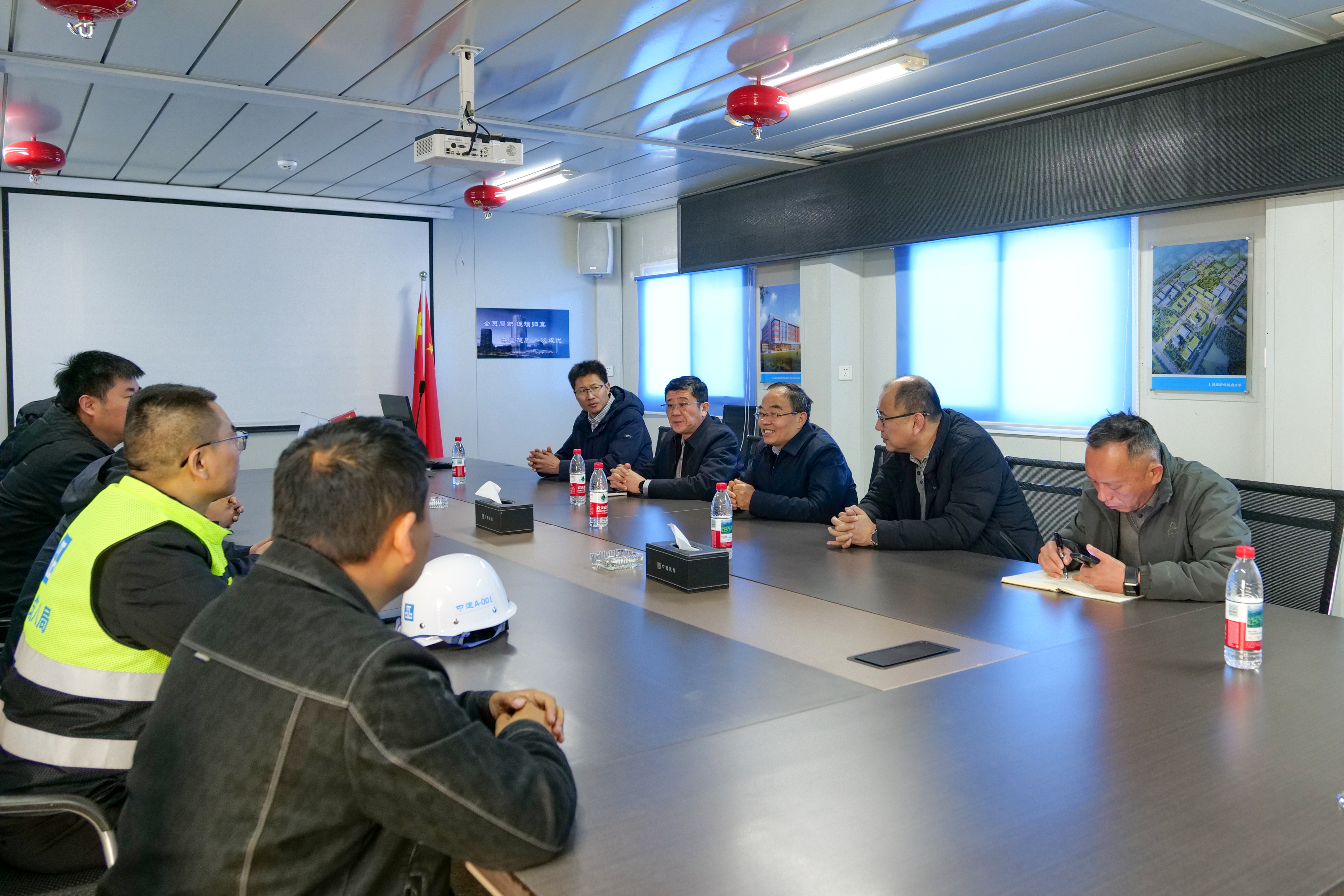 在施工现场会议室,郝荣平主持召开项目建设工作推进会。会上,施工、监理、审计等各参建单位依次汇报了项目整体建设情况、安全质量管控措施、工期推进计划及下一步工作安排。听取汇报后,郝荣平就加快推进二期工程建设工作提出要求,强调要以“高站位、大格局、宽肩膀”统筹推进工程建设各项工作,全面抓实安全保障、质量管控与工程进度,以匠心铸精品、以规范树标杆,确保项目建设高质量推进。