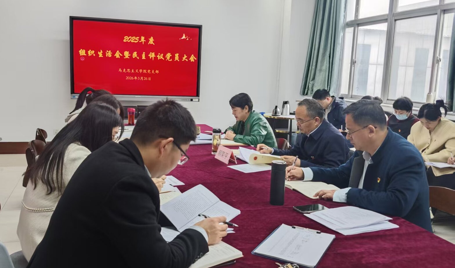 近日,马克思主义学院党支部召开2025年度组织生活会,学院党委书记郝荣平列席指导,学院指导组成员、党支部全体党员参加会议。