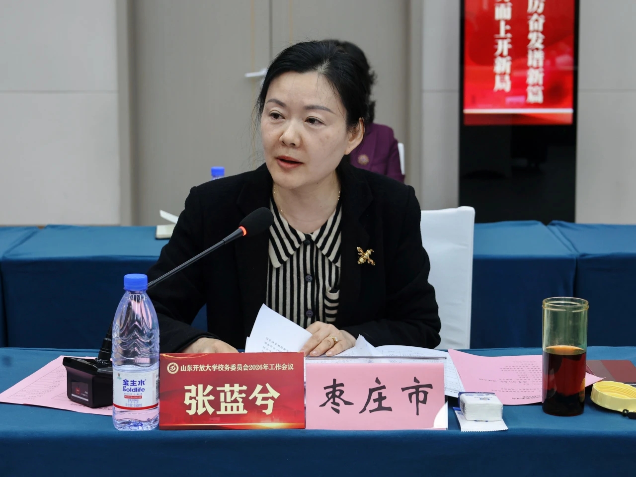 近日,山东开放大学校务委员会2026年工作会议在济南顺利召开。学院副院长张蓝兮立足枣庄开放大学办学实践作交流发言。设立市级开放大学的职业学院主要负责同志、山东开放大学校务委员会全体委员出席会议,各市开放大学业务负责同志,山东开放大学有关部门负责同志共60余人参加会议。