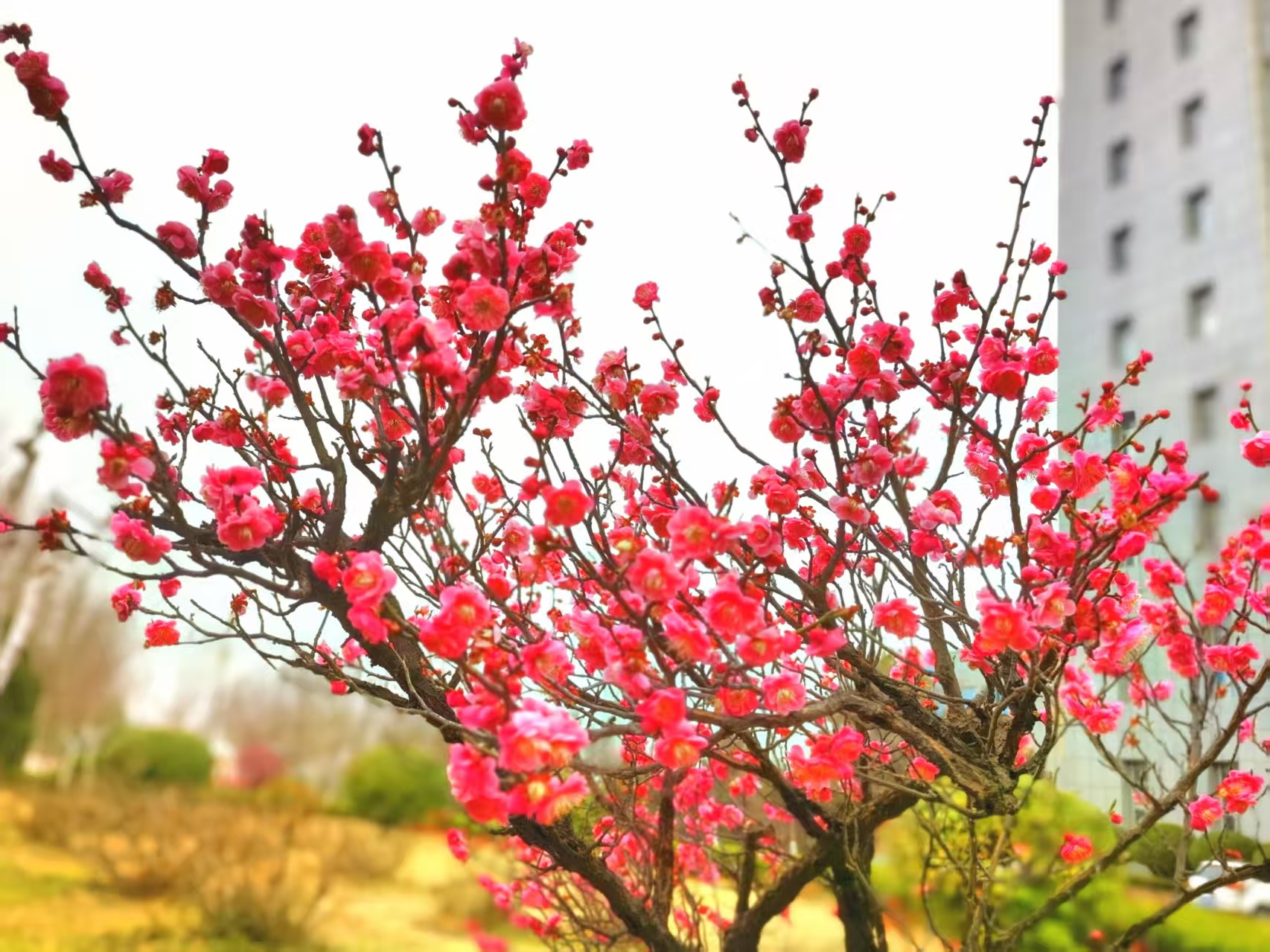 图书信息楼的红梅